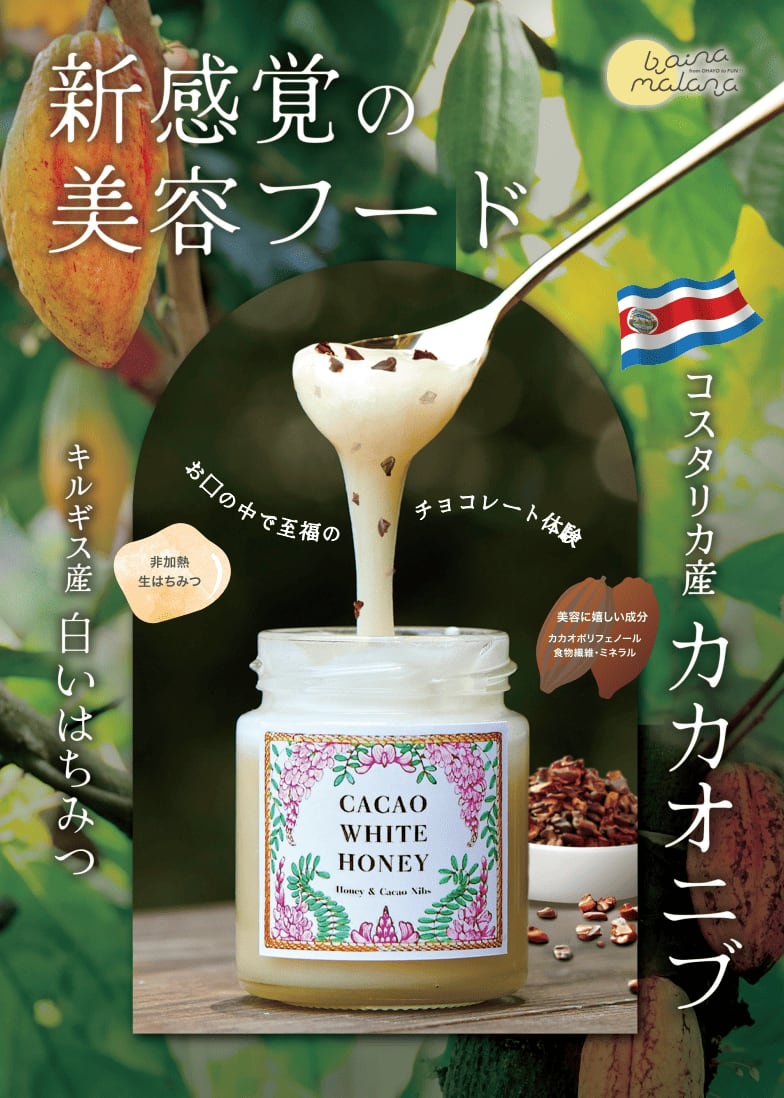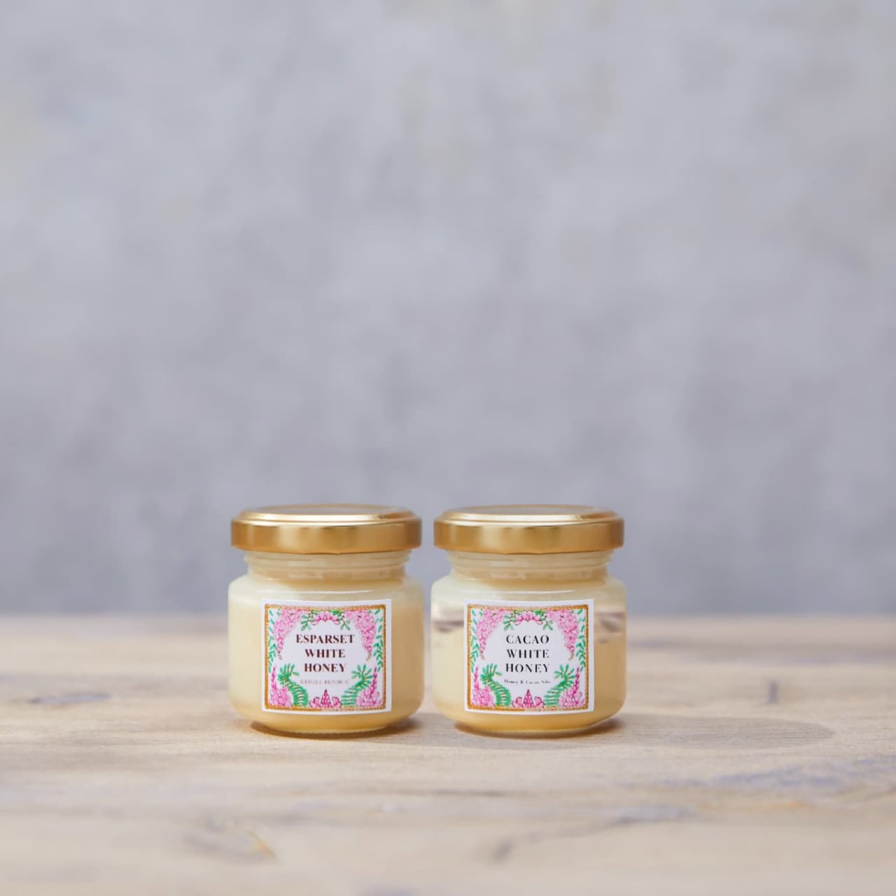 “甘い”だけじゃない、味わうバレンタイン。 白いはちみつのまろやかさと、カカオニブのほろ苦さを 小瓶で気軽に食べ比べできるセットです。 おすすめの食べ方:そのまま一匙、夜のデザートに。 内容量45g×2本 /キルギス産・非加熱の天然蜂蜜 ※1歳未満のお子さまには与えないでください