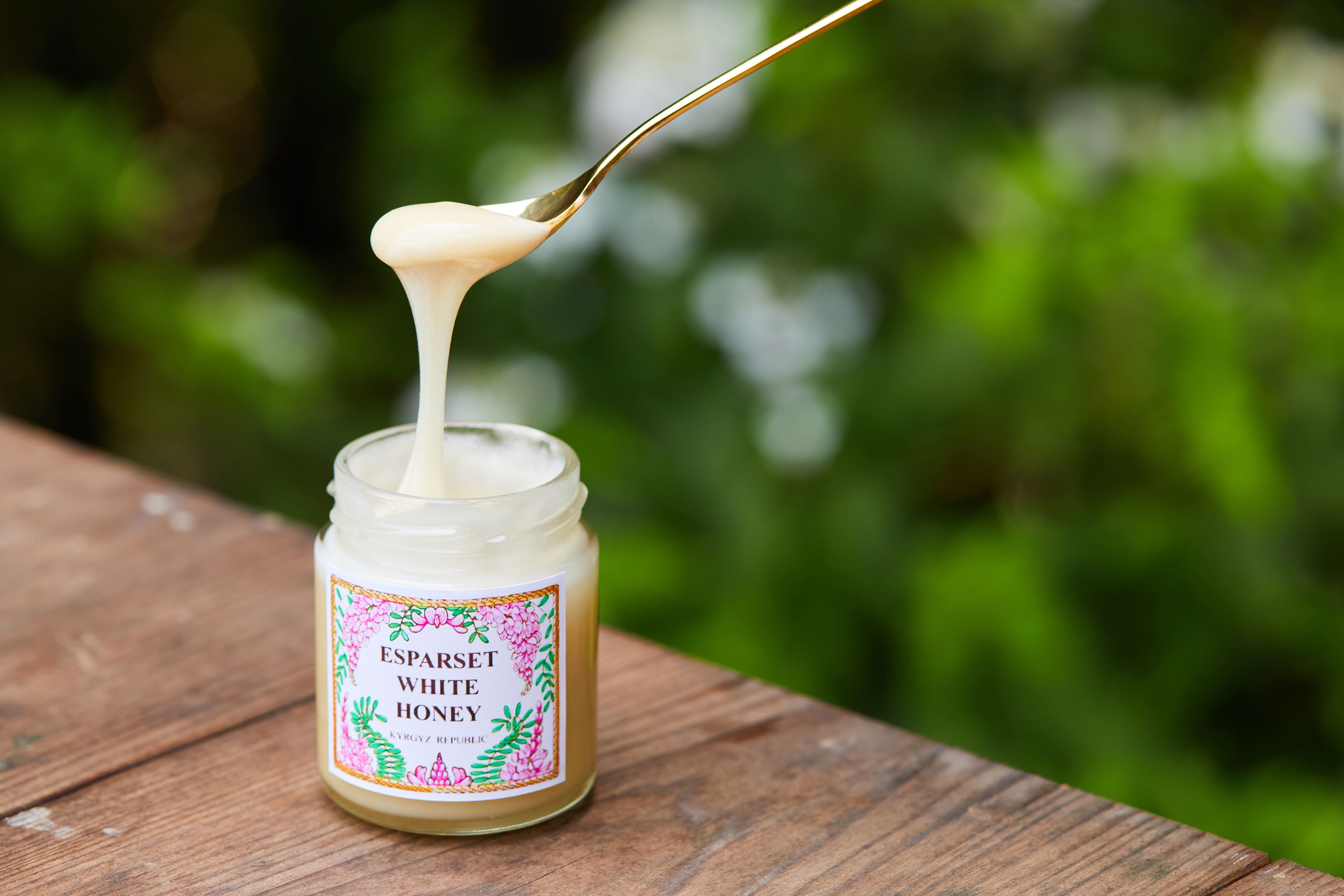 この白いはちみつは、キルギス共和国から直接輸入され、生産者の生活支援にもつながる商品です。